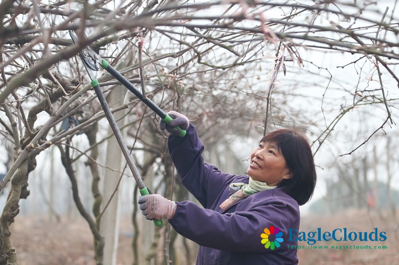 1月5日,果农在江苏省镇江句容市茅山镇一处猕猴桃园为果树剪枝。