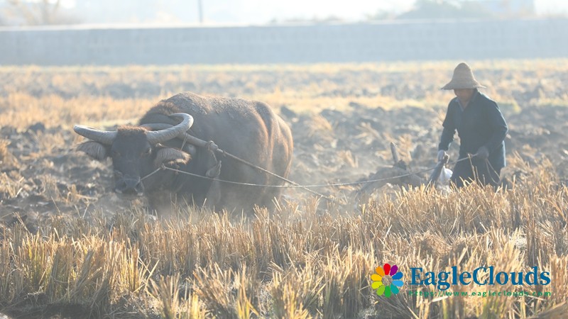 1月5日,在云南腾冲市腾越街道朝阳社区,农民开犁冬闲农田。