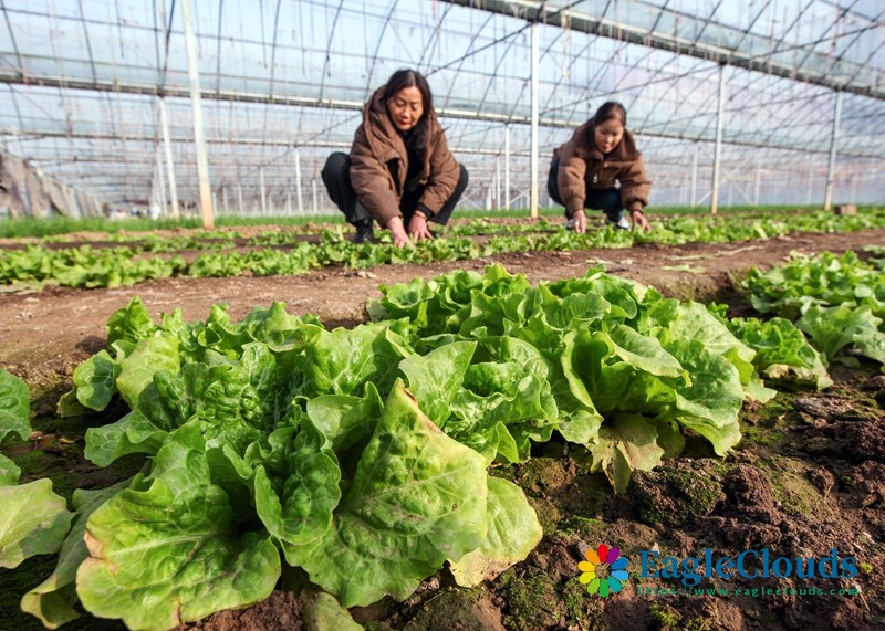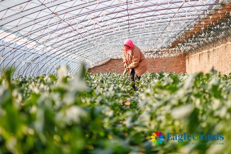 1月5日,在河南省焦作市博爱县鸿昌街道前乔村,菜农在蔬菜大棚里忙碌。