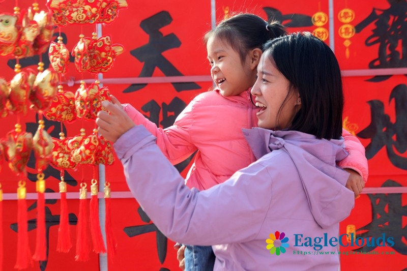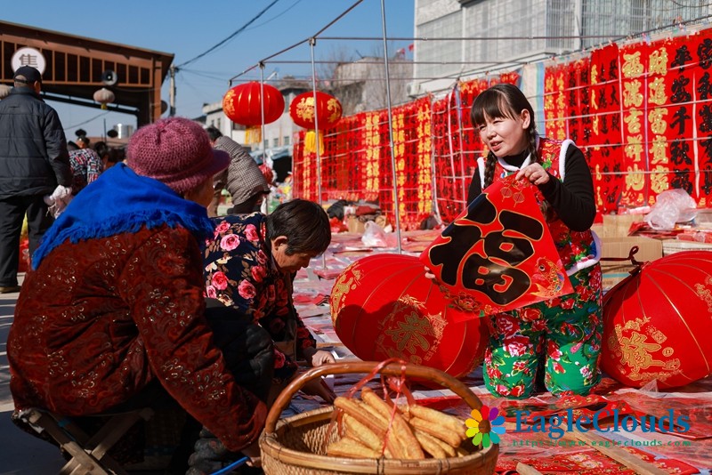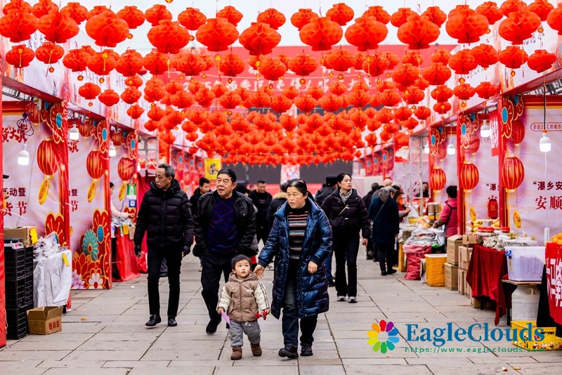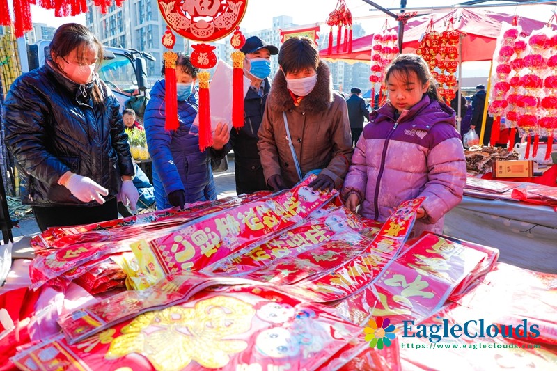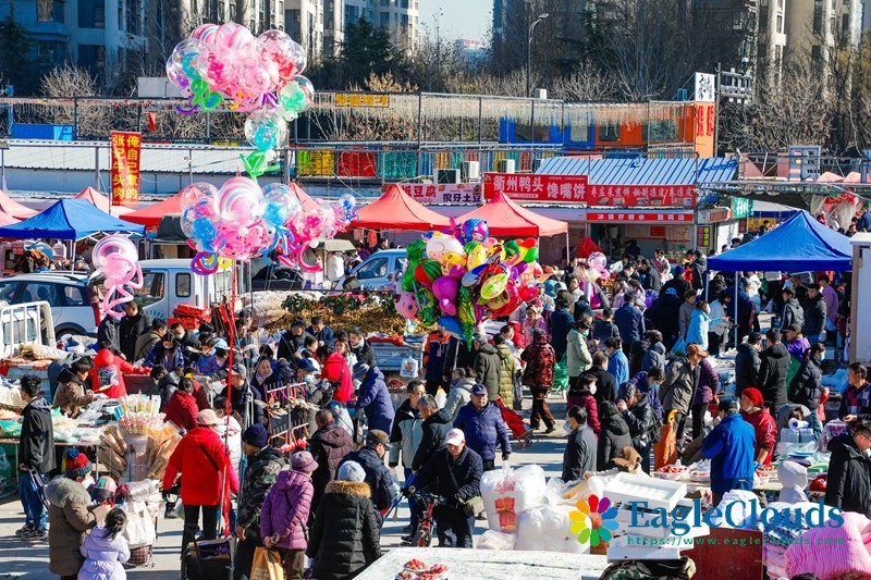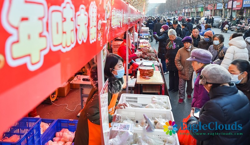 春节临近,各地年货市场热闹非凡,人们逛大集,购年货,迎接农历新年。