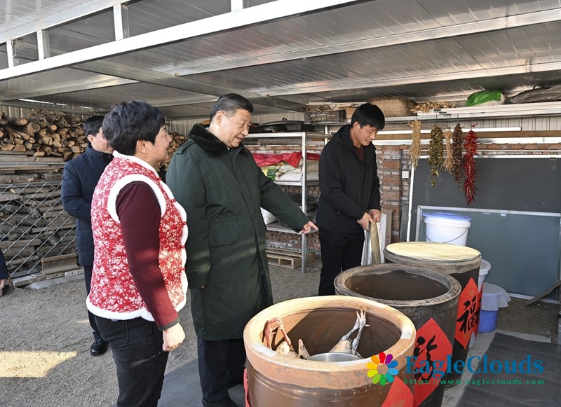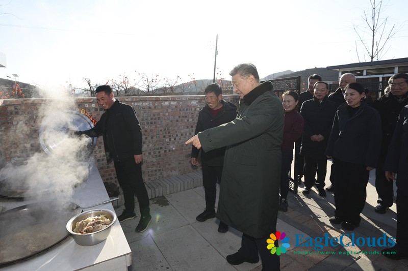 正值农历小年,家家户户贴上了春联窗花。习近平先后走进村民朱西存、王宝维家,察看房屋结构质量和年货准备情况,了解政府的重建房屋补助是否到位、村民收入来源主要有哪些。在同王宝维一家围坐一起时,王宝维告诉总书记,新房敞亮暖和,年货都办齐了,全村人发自内心感恩党、感恩总书记。习近平问他还有什么要求和希望,他说自己的希望是把生活过得更好。习近平高兴地回应他,你们的希望也就是我们的希望,党和政府永远是人民群众的强大依靠。