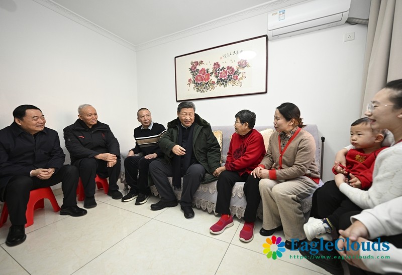 随后,习近平来到经过集中改造的大东区长安街道长安小区,走进四世同堂的郎素兰家中看望。得知小区改造后居住环境明显改善,各方面服务保障到位,习近平表示肯定。他指出,城市更新要因地制宜,同社区建设结合起来,一切着眼于便民、利民、安民,特别要更好地关心呵护“一老一小”。