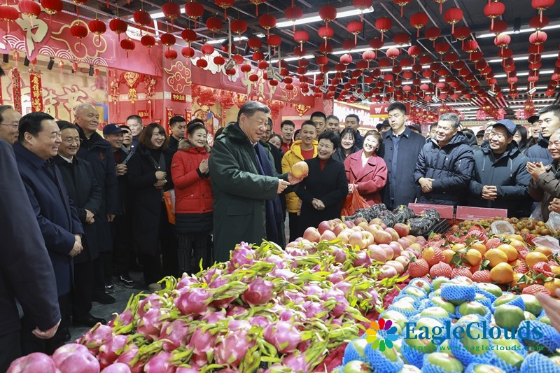 沈阳大东副食品商场历史悠久,富有特色的年节商品琳琅满目。23日上午,习近平来到这里,察看多家店铺,频频同店主和顾客交流,详细了解节日期间市场供应情况。大家见到总书记都十分激动,连声欢呼“总书记好”!习近平对大家说,“菜篮子”、“米袋子”、“果盘子”是民生大事,现在物质丰裕,过年团圆更要让大家吃得好、吃得健康。