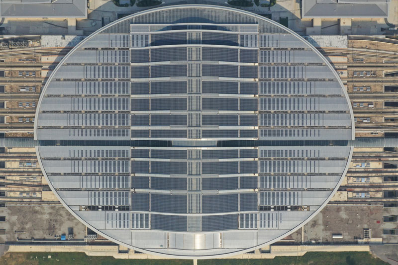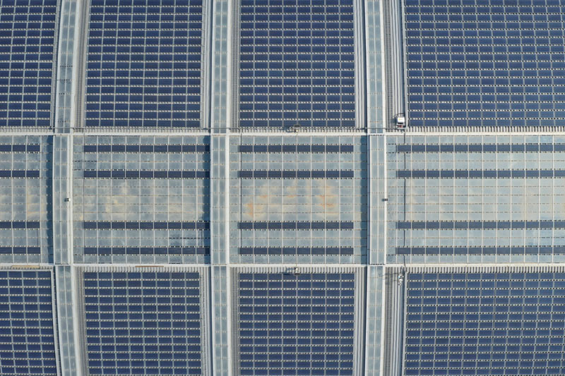 京雄城际铁路雄安站站顶分布式光伏电站(9月9日摄,无人机照片)。