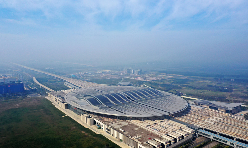 京雄城际铁路雄安站(9月9日摄,无人机照片)。