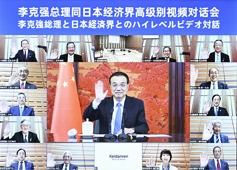 国务院总理李克强在北京中南海紫光阁同日本经济界代表举行高级别视频对话会