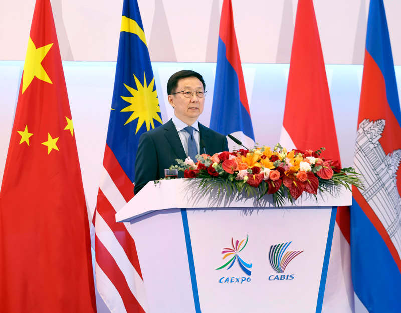 韩正在第十九届中国-东盟博览会开幕式上发表演讲